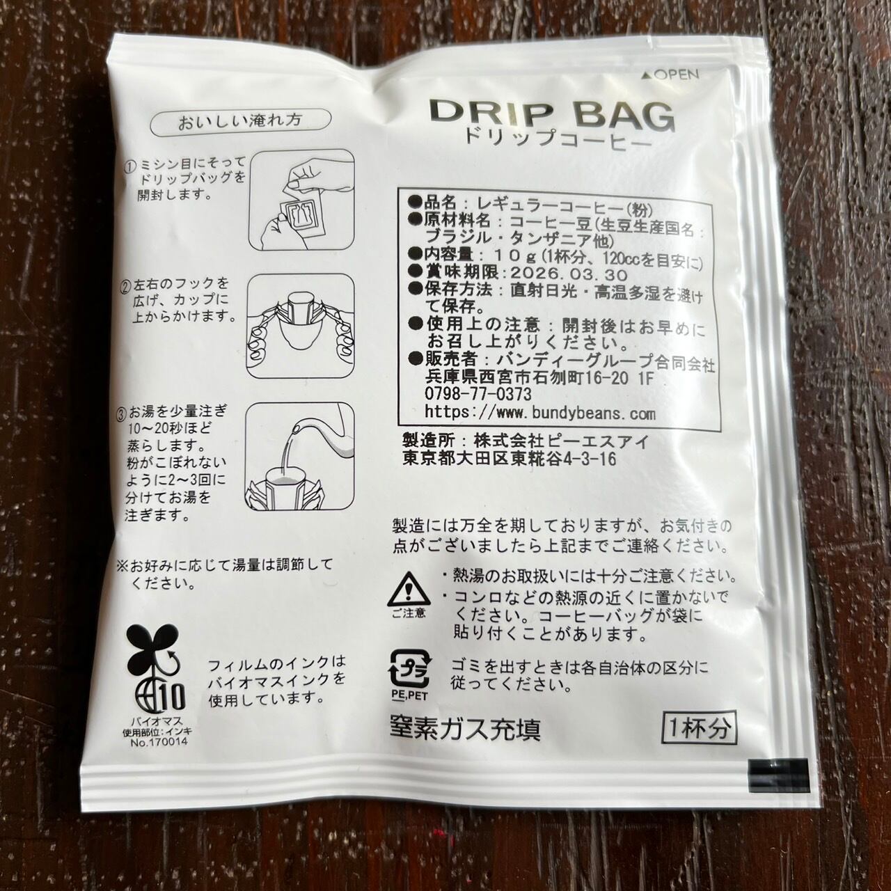 ※裏面の「販売者」にはBUNDY BEANS様の店舗情報が記載されております。